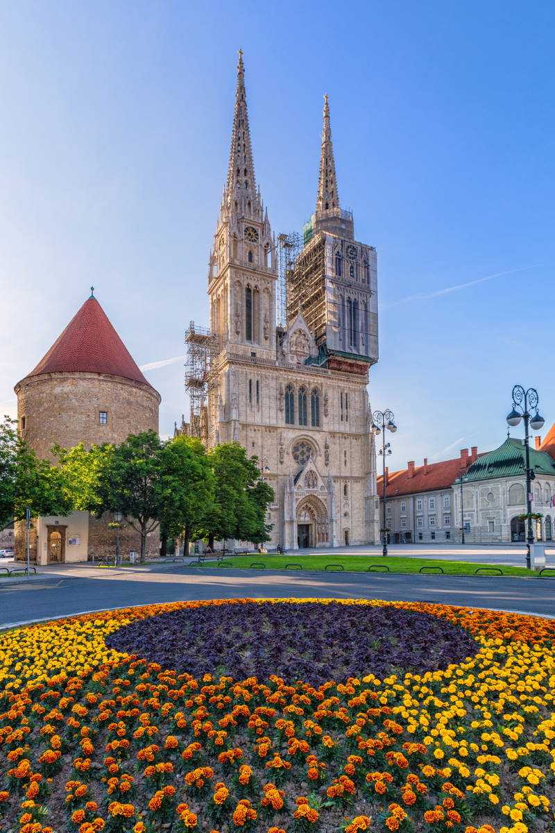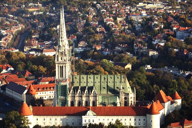 C’est l’édifice le plus haut de cette partie de l’Europe (en plus, les deux clochers qui ne sont pas de la même hauteur !), qui porte un nom très long, cathédrale de l’Assomption de la Vierge Marie et des saints Stéphane et Ladislav. De nos jours elle domine la colline Kaptol, un des deux noyaux historiques de la ville de Zagreb.