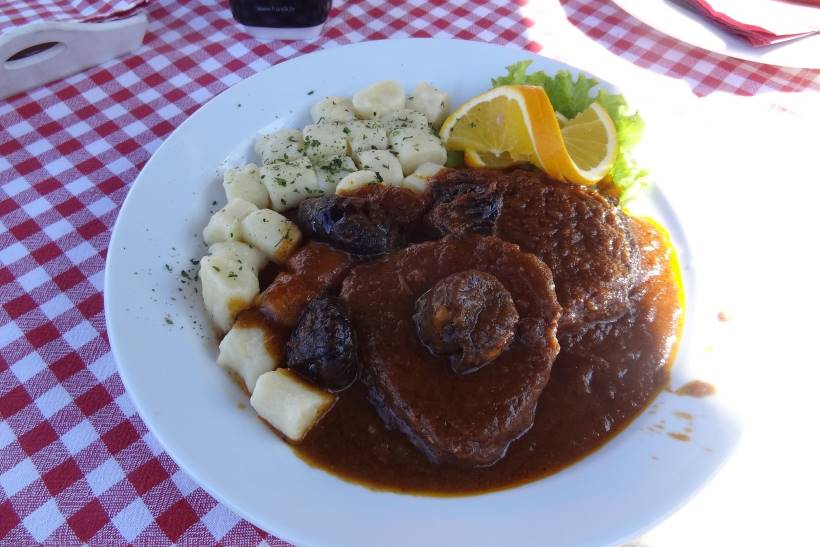 Dalmatinska pašticada est un plat copieux qu’on sert accompagné de pâtes faites maison et des gnocchis. On le sert en plat principal surtout pour les grandes fêtes de familles.