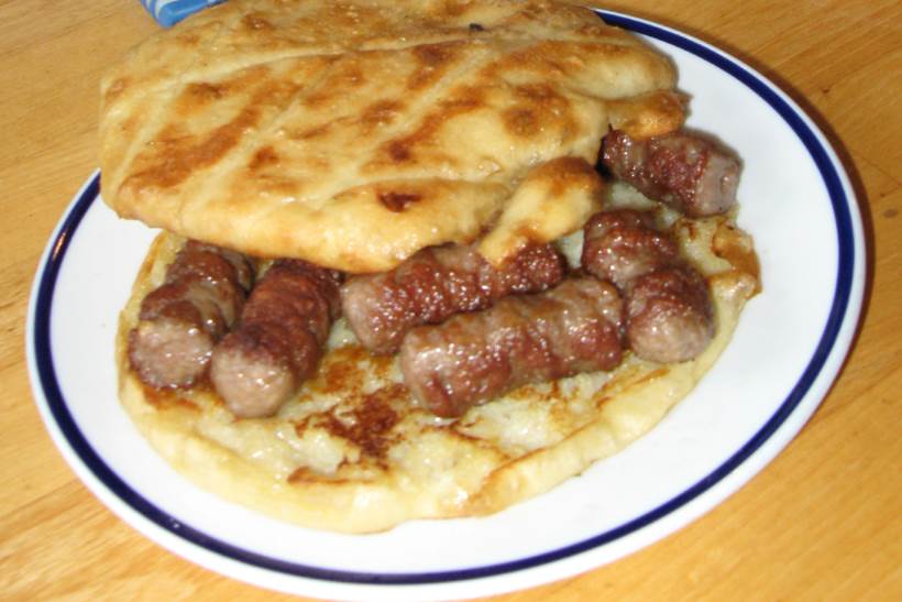 Sandwich aux Ćevapi (Ćevapi u lepinji) est une délicieuse fast food, spécialité originaire de Bosnie, adorée par tous ! Les ćevapi sont les boulettes de viande hachée épicée, servies grillés dans un pain fait maison (lepinja) antérieurement trempé dans une sauce spéciale. Ce « Sanwich » aux ćevapi est accompagné avec des oignons et de l’ajvar (sauce épaisse de poivrons et d’aubergine), et au choix aussi avec du fromage frais du pays – kajmak.
