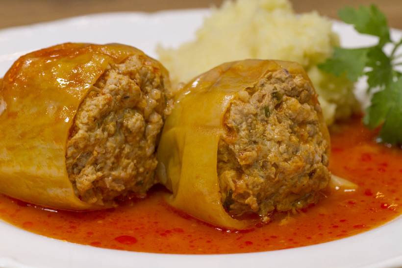 Poivrons farcis (punjene paprike) plat qui par la mode de préparation ressemble à sarma, mais un peu plus léger. Ce sont les poivrons farcis de la viande hachée, du riz et des épices et cuits dans la sauce de tomate. Ce plat est typique pour l’été et l’automne. Il est servi aussi avec de la purée de pommes de terre.